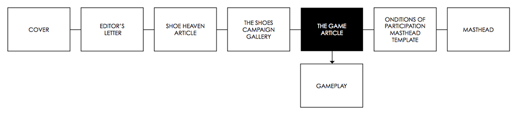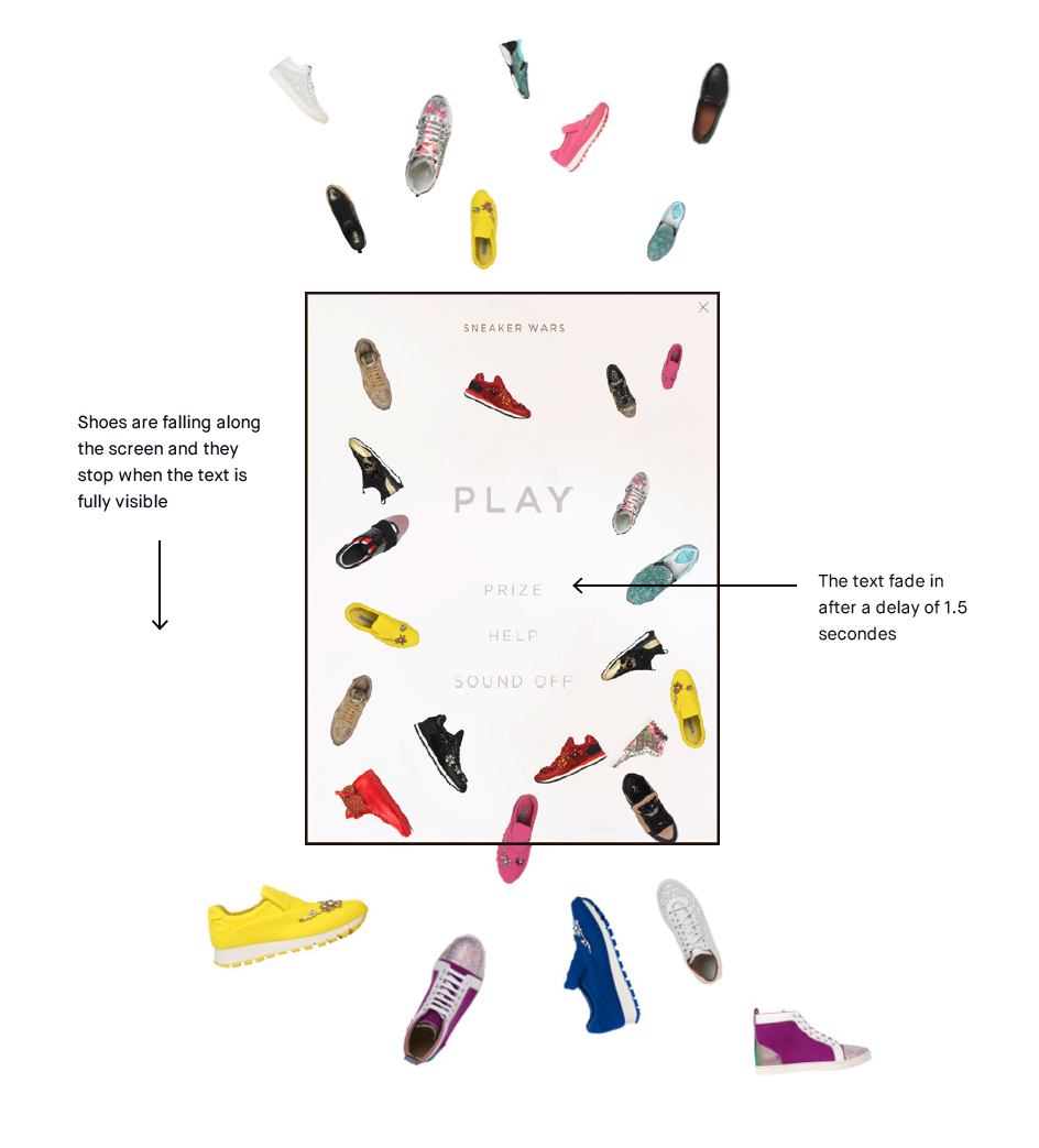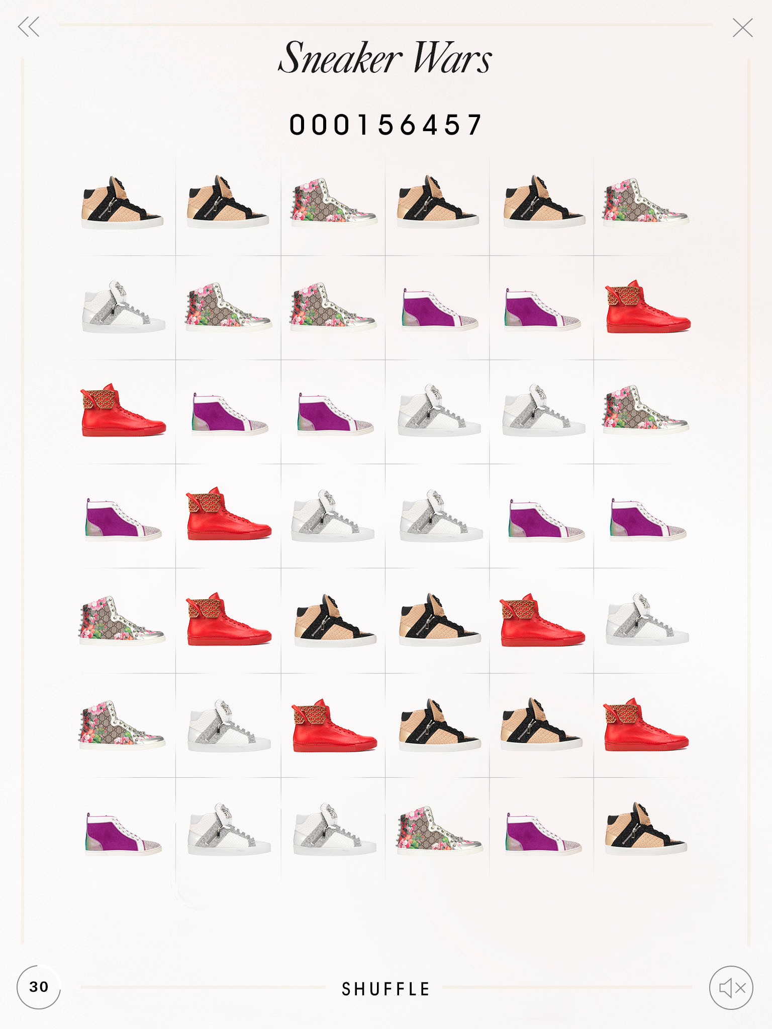 The gameplay is based on Candy Crush. 22 different pairs of sneakers are used in the game, the rule is simple. After aligning 3 or more shoes, score the maximum points by blowing them up.