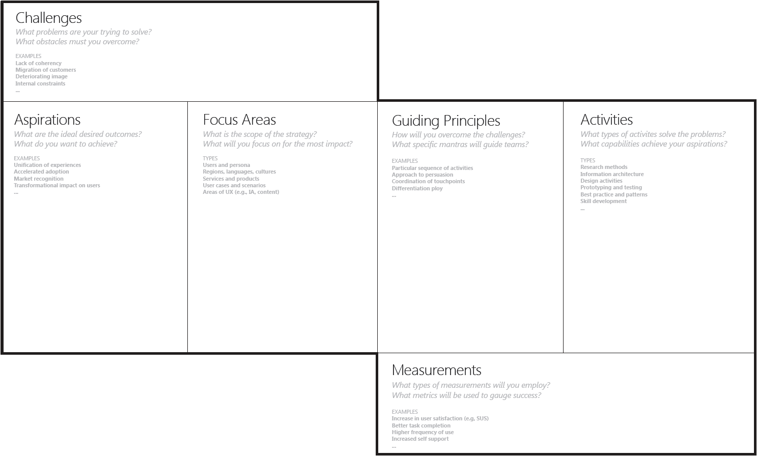 From a very early stage, completing a simple diagram can help driving your research in the good direction. The canvas below quickly help formulating a model/idea, and can act as a visual guide throuhout the design process.