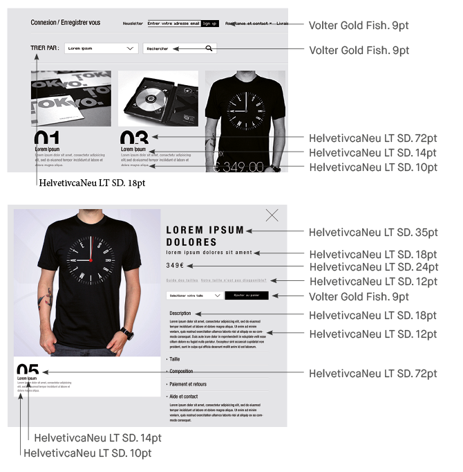In a second phase, a prototype based on the mood boards and Harrods' design system was designed. The most important issues to address at this stage were : Hierarchy, Tech Visibility and Scalability.