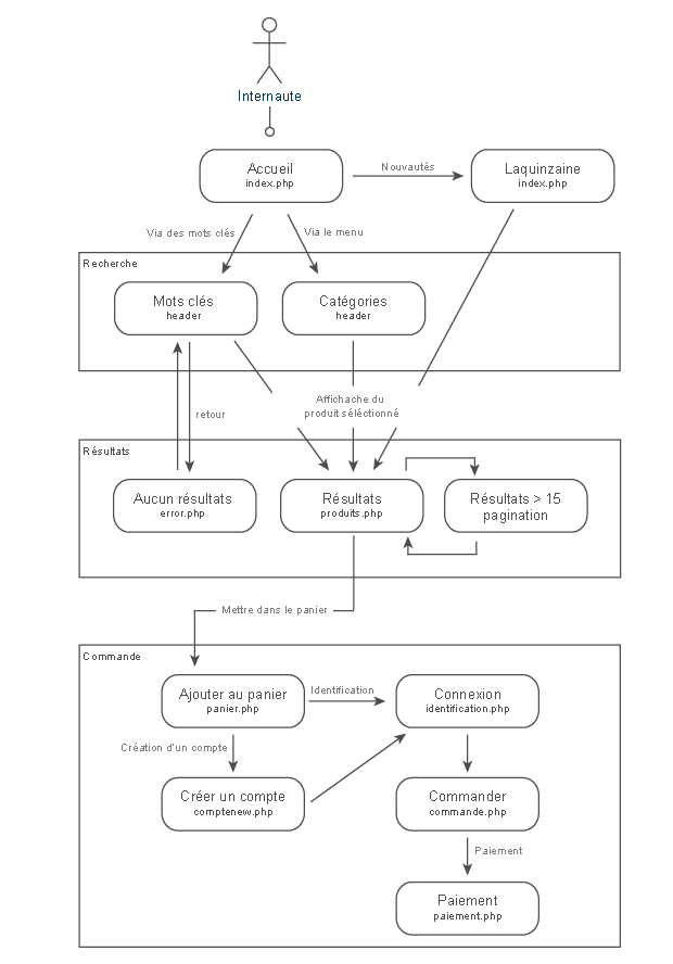 We created a wide range of possible scenarios/diagrams to visualise the best way to design our website. Please find an example below :